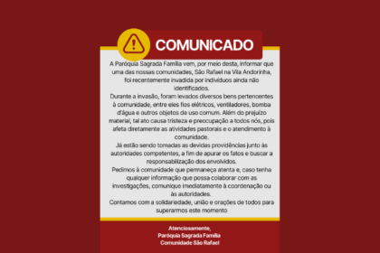 IGREJA DA VILA ANDORINHA É INVADIDA E TEM ITENS ROUBADOS