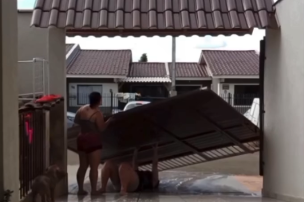 DURANTE BRINCADEIRA PARA SE REFRESCAR NO CALOR ACABOU SOBRANDO PARA O PORTÃO