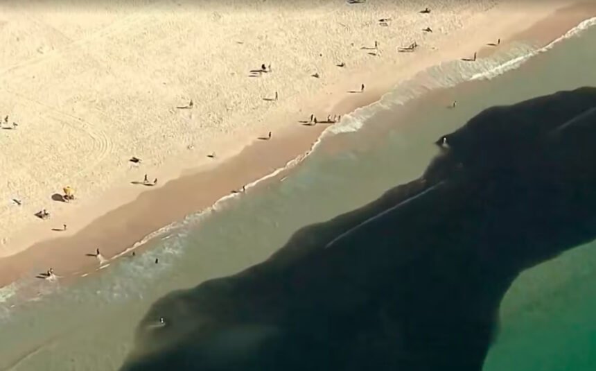 BANHISTAS NADAM NO MEIO DE CARDUMES EM PRAIA DO RIO