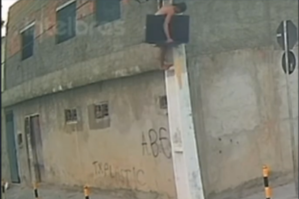 “HOMEM ARANHA” DE CARUARU: CÂMERAS DE SEGURANÇA FLAGRAM HOMEM DESCENDO PELO POSTE APÓS ROUBAR RESIDÊNCIA