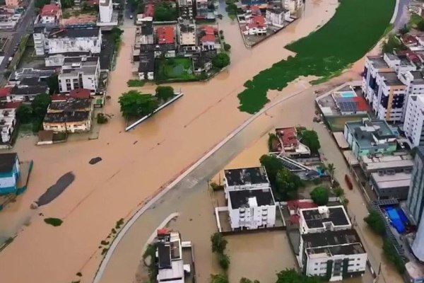 Imagens aéreas que circulam nas redes sociais mostram ruas completamente alagadas, com a água invadindo residências após o transbordamento do canal. Nos registros, também é possível observar a presença de baronesas (plantas que indicam altos níveis de poluição) ao longo do curso d’água.
