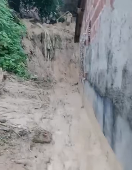 Entre os casos, dois deslizamentos atingiram residências na comunidade do Córrego da Esperança, no bairro Timbi. Em uma delas, parte da barreira cedeu e alcançou a área de serviço da casa.