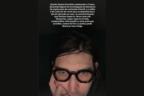 “Hytalo Santos foi, enfim, condenado a 11 anos de prisão depois de investigação da denúncia de exploração de conteúdo infantil. O crédito é de cada um de vocês que acompanharam e deram atenção ao caso. A conscientização que fizemos importa”, escreveu Felca nos stories na madrugada desta terça, 24.