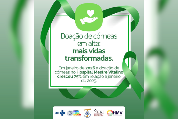 O Hospital Mestre Vitalino, em Caruaru, registrou um crescimento expressivo na doação de córneas no primeiro mês de 2026. Em janeiro, a unidade apresentou um aumento de 75% nas doações de córneas, em comparação com o mesmo período de 2025, consolidando um avanço significativo no fortalecimento da cultura da doação e na atuação da Organização de Procura de Órgãos (OPO).
