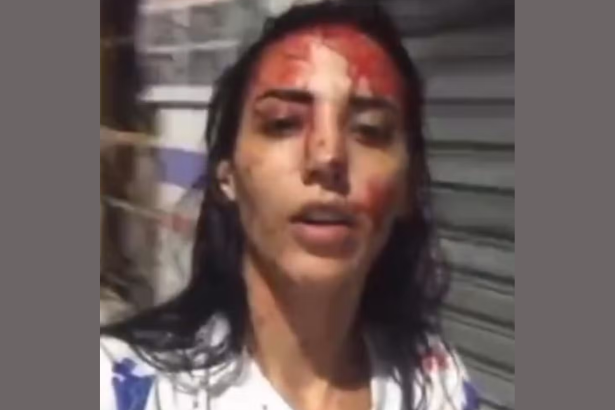 A identidade da jovem não foi divulgada oficialmente, mas, nas redes sociais, ela se apresenta como Bia Correia. Após o ocorrido, publicou um vídeo em que aparece com uma faca e afirma que reagiu para não apanhar mais. Depois, divulgou outra gravação, chorando, dizendo que estava fora de si no momento e que foi ela quem chamou o socorro.