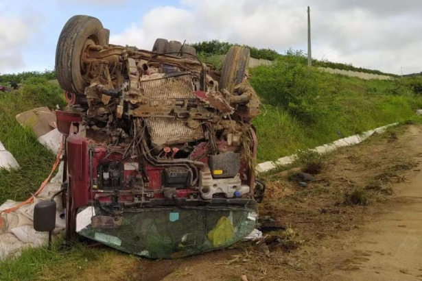 Um homem morreu após um caminhão carregado com fardos de trigo capotar na manhã desta quinta-feira (19), no km 88 da BR-424, em Garanhuns, no Agreste de Pernambuco.