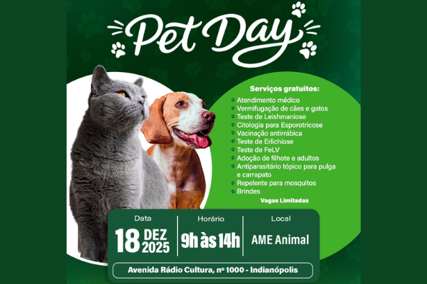 A ação ocorrerá das 9h às 14h, na AME Animal, localizada na Av. Rádio Cultura, nº 1000, bairro Indianópolis. As vagas são limitadas e distribuídas por ordem de chegada.